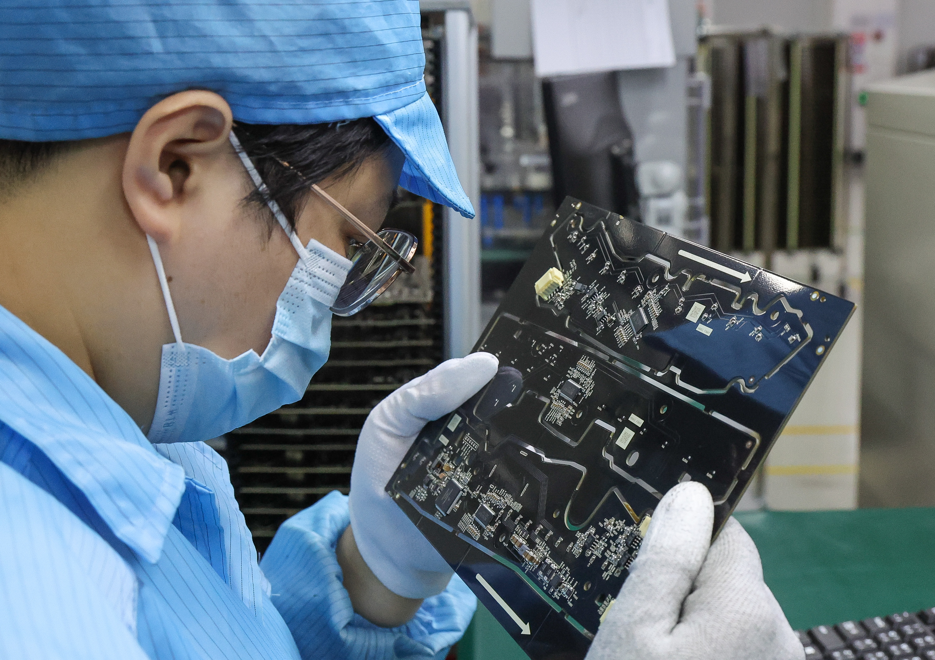 质检员在佛山照明高明生产基地的车灯生产车间检测应用于国产高端新能源汽车的贯穿式尾灯模组(8月9日摄)。目前,佛山照明正持续保持5%以上的研发投入比,强化核心技术和原创技术的布局和攻关,以科技创新为广东国有企业高质量发展注入源源不断的动能。新华社记者 刘大伟 摄