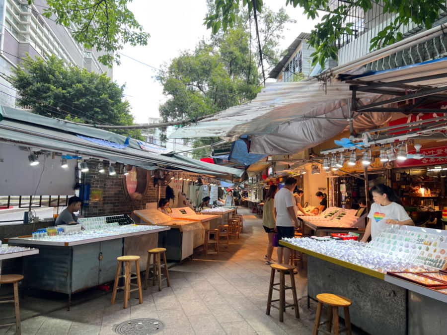 作为中国久负盛名的珠宝街,华林玉器街是一个大型的翡翠集散地,聚集了广州八成以上的玉器商,是囊括了广州玉器交易总量的90%以上。其规模之大,经营品种之多为全市之冠。玉器街与历史悠久的华林寺共处一地,构成市区观光旅游购物的一个人文景点。