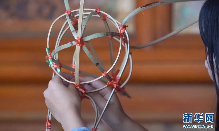 杨飞梧正在扎制火把(摄于7月28日)。新华网发(罗新才摄)