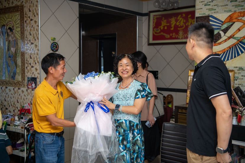 当天,番禺石碁镇桥山村6名大学毕业20多年的后辈相约来探望从我国台湾回穗的詹惠美,她是曾本贤的遗孀。20世纪90年代,曾本贤从台湾返番禺家乡办厂。30余年间,曾本贤及家人捐赠超过3000万元,用于助学、扶困、敬老、建设家乡等,其中受到曾本贤伉俪奖励、资助考上大学的桥山村学生就有300多名,改变了众多桥山青年的人生轨迹。捐款毫不吝啬的曾本贤生活却极为简朴,出行就是一辆破旧单车,甚至不舍换掉一件穿了20年的旧衣衫。这样可亲可敬的乡贤,让村民们始终铭记在心,感念在心。