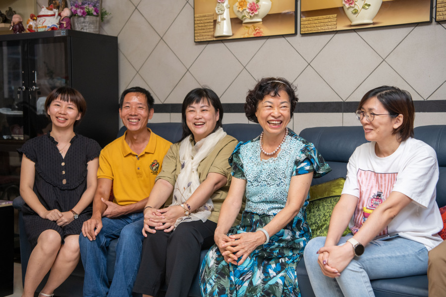 中秋节将近,番禺区石碁镇一栋民居里,一场时隔五年、跨越海峡的团圆聚会正在进行。石碁镇桥山村村干部曾福海和5名学弟学妹前来探访“伯母” 詹惠美。桥山村是詹惠美已故丈夫曾本贤的家乡,约30年前,她随丈夫回家乡办厂、生活,多年来往返两地。如今,隔了五年没回番禺,见到村里的后辈,就像见到久违的家人。