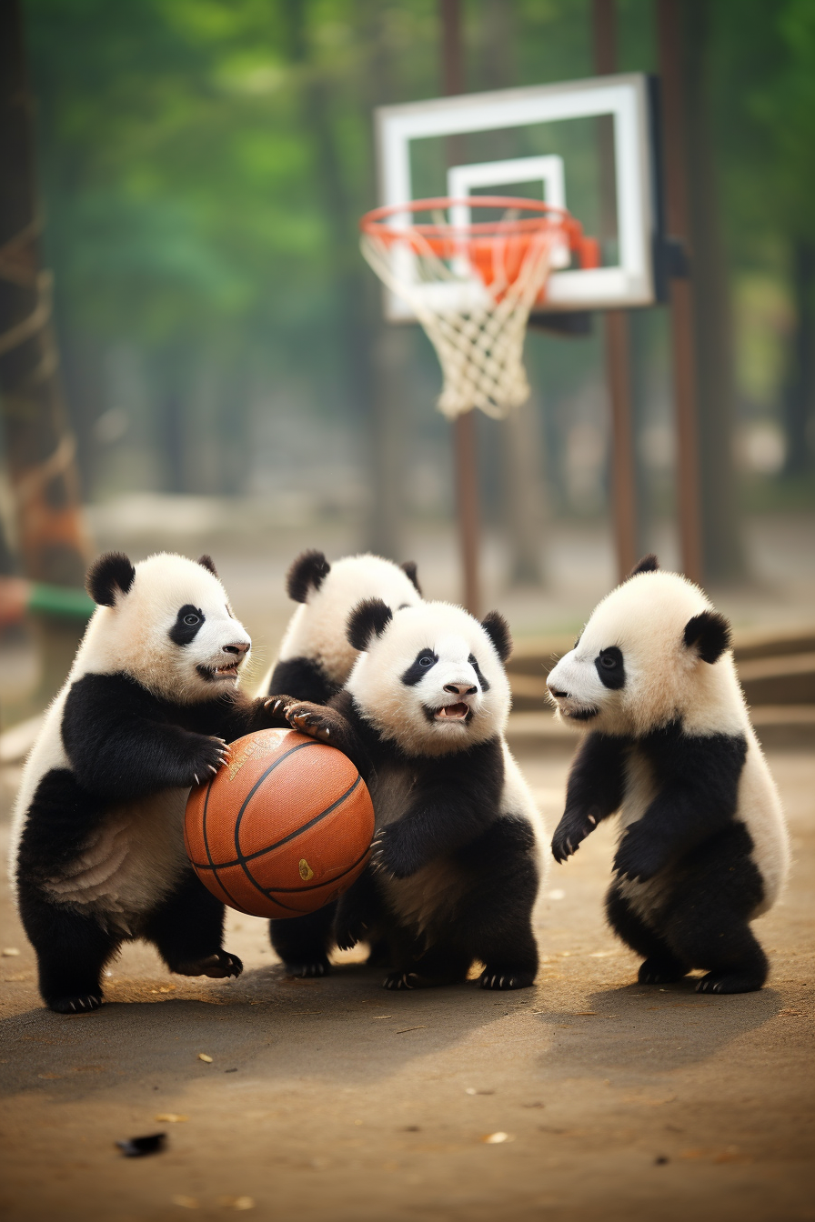 熊猫在进行篮球比赛