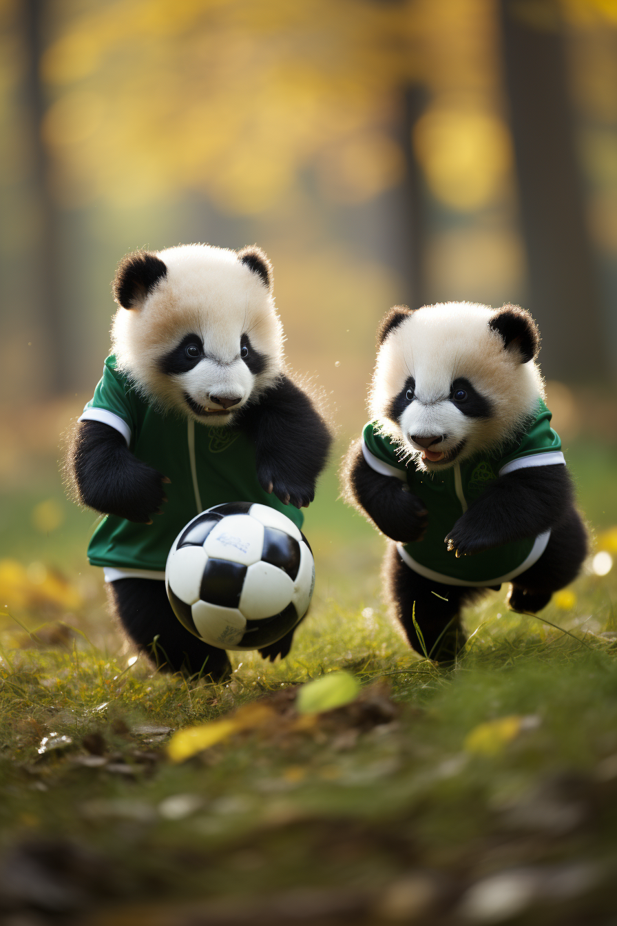 熊猫在进行足球比赛
