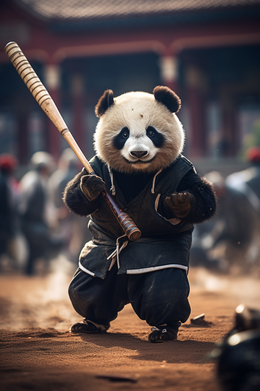 熊猫在进行棒球比赛