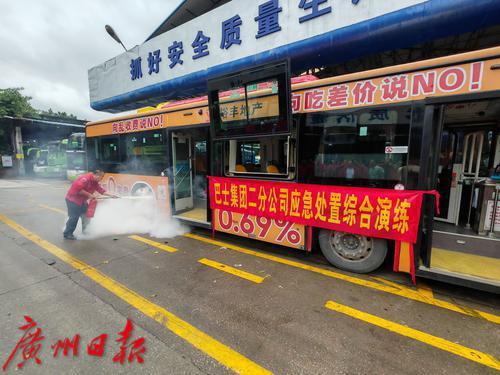 近日,广州巴士集团二分公司分别在黄村停车场、萧岗修理厂、石溪修理厂、太和民营科技园总站以及罗冲围停车场组织开展2023年应急演练季公交车辆火灾事故“一键逃生”综合应急演练。演练分6场次进行,共有1985名公交车长参加演练。 演练开始后,一辆公交车中门位置有乘客行李冒烟“起火”,乘客紧急向公交车长“呼救”。公交车长迅速靠边停车,打开车门疏散乘客,将车辆熄火并按下SOS紧急呼救按钮,利用纯电动公交车内置的“一键升窗功能”引导靠窗乘客跳窗逃生。“请大家迅速撤离至车辆前方50米的路边,不要围观!” 一边是乘客迅速撤离“自救”,另一边驾驶员设置警戒区域,随后拨打110和119,同步向车队长和安全员报告,然后跑回车辆尾部手持灭火器进行戒备,等待公安、消防部门到场进行详细检查。演练最后,在各方人员正确、高效的处置下,“火灾”事故得到有效控制,火情得到排除。 据悉,本次演练按照“仿真模拟、情景再现”的原则进行,旨在进一步磨合公交行业应对突发事件的应急处置联动机制,提升广大职工熟悉掌握安全应急事件处置的基本技能。