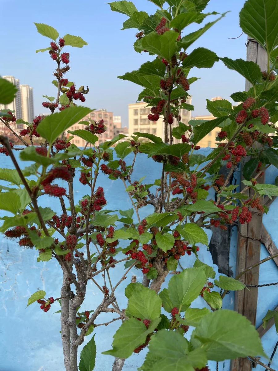 若想把一棵火龙果树种到开花,首先“结果枝”必须是老枝,其次枝条必须要下垂45度左右,最后就是肥水得跟上。“功夫做足,花期到了,自然就开花了。”除了火龙果,热爱园艺的单女士还亲力亲为地种了无花果、桑葚等植物,今年还准备入手葡萄和桃子。