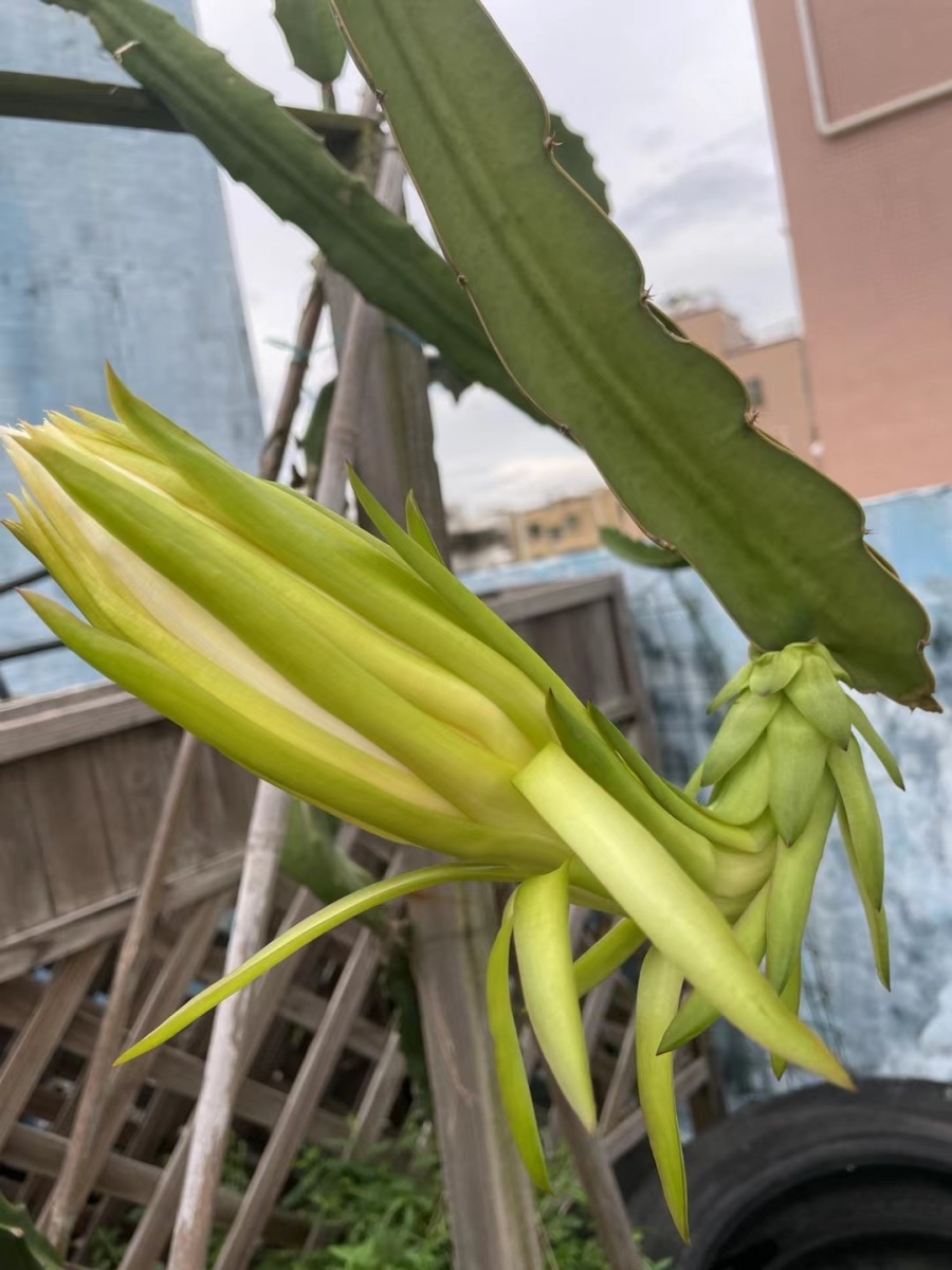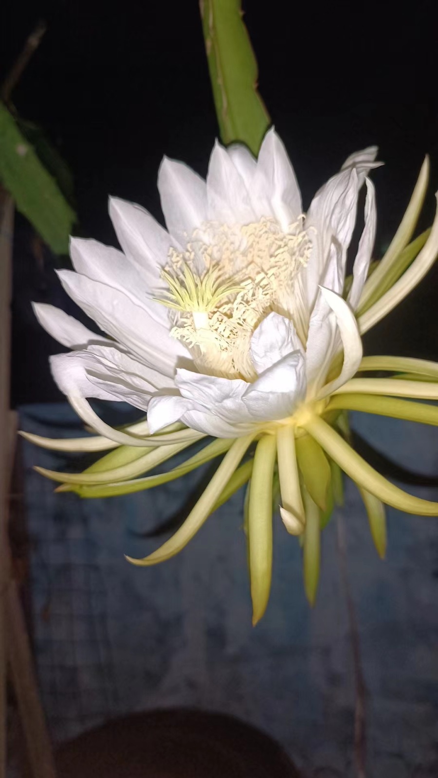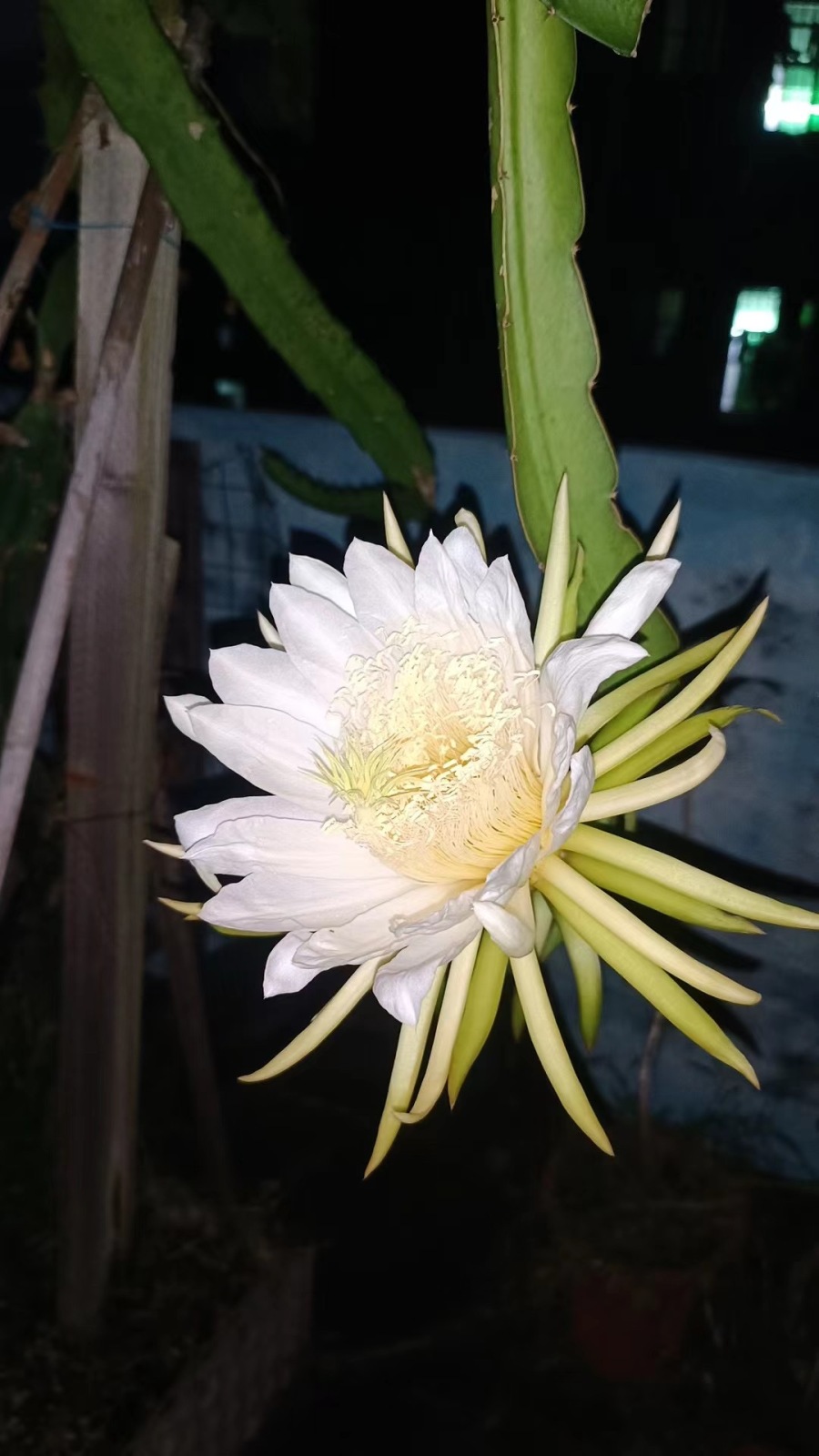 火龙果树在夜间开花,花形如同昙花一般惊艳。