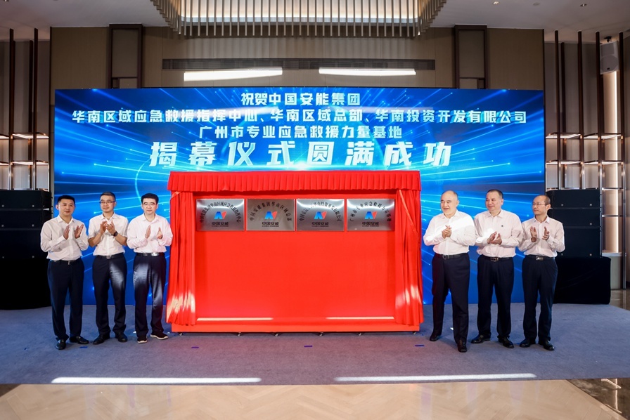 中国安能集团党委书记、董事长周国平,广东省政府副秘书长胡洪,广州市政府副秘书长蔡辉,中国安能集团华南公司董事长谌少英、总经理李建平,广州市应急管理局副局长詹少卿共同为中国安能集团华南区域应急救援指挥中心、广州市专业应急救援力量基地揭牌。