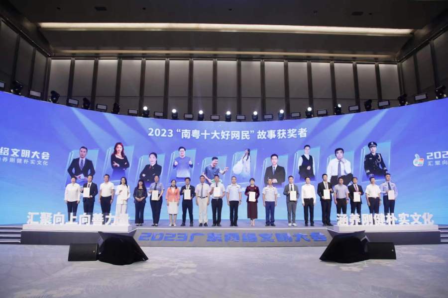 9月21日,2023广东网络文明大会在广州拉开帷幕,大会以“汇聚向上向善力量 涵养刚健朴实文化”为主题,现场揭晓了2023“南粤十大好网民”故事,引导、呼吁广大网民共同担当,树立正确价值取向,推动全省网络文明建设再上台阶。