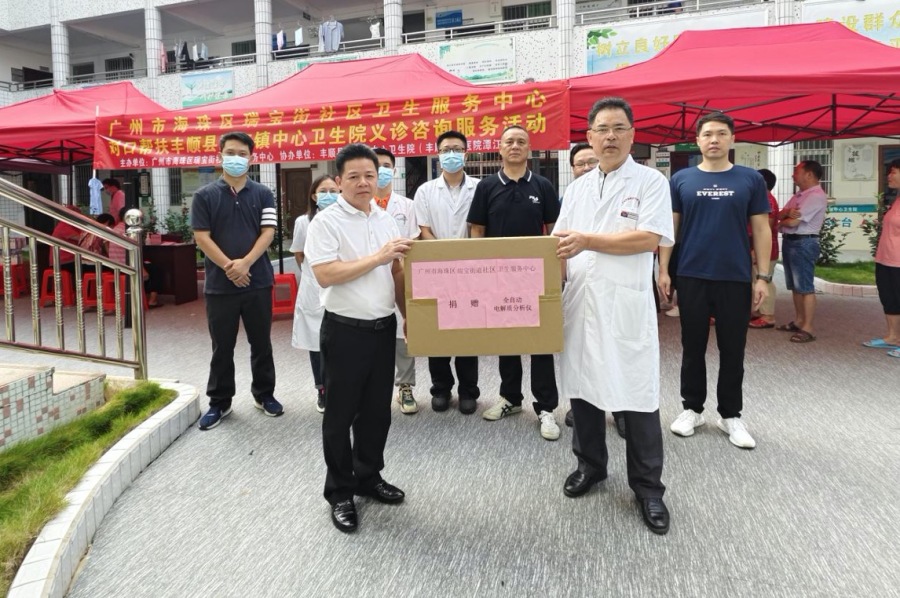 活动结束后,广州市海珠区瑞宝街社区卫生服务中心向潭江镇中心卫生院捐赠了全自动电解质分析仪,助力改善该镇医疗卫生服务条件,提升医疗服务资源,更好地满足人民群众健康需求。