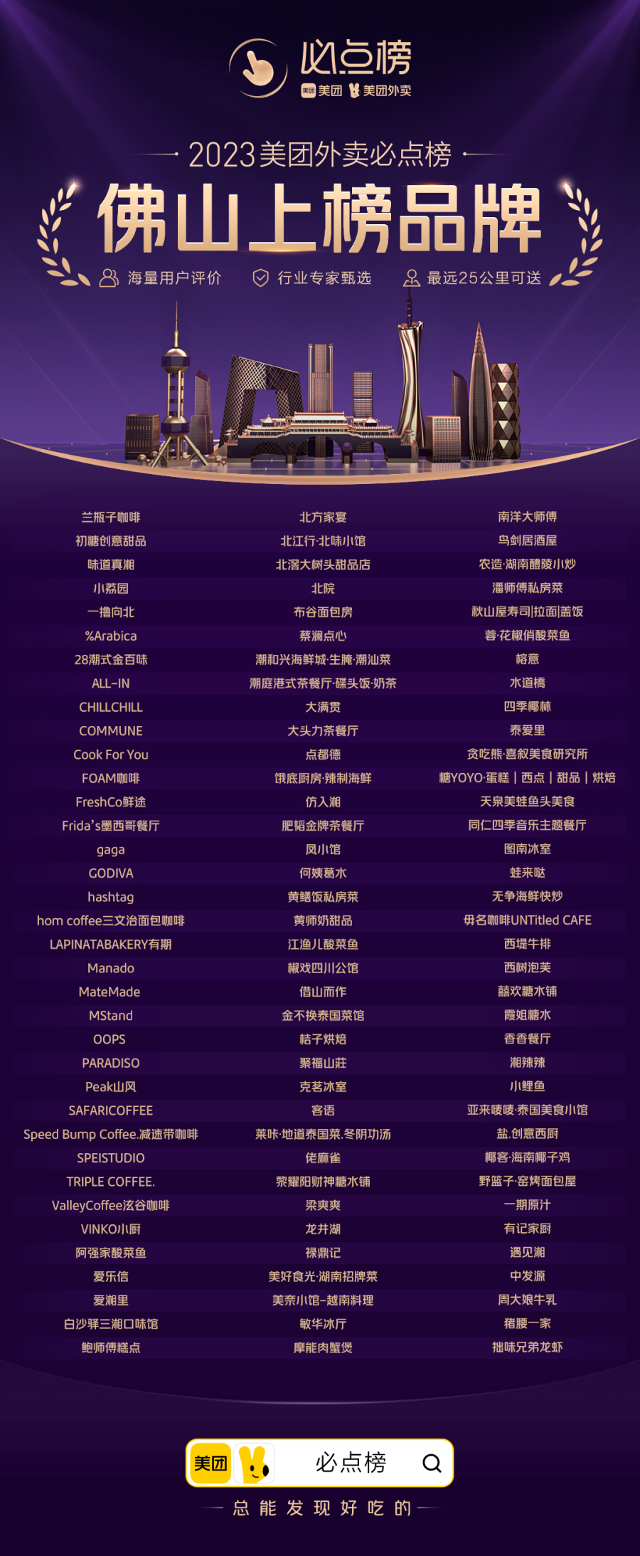 佛山是一个历史悠久的美食名城,必点榜单一方面传承粤菜经典,汇聚了大头力茶餐厅、点都德、猪腰一家等众多美食品牌;另一方面,囊括湘菜、川菜、东北菜、本帮江浙菜等国内菜系,还有越南菜、泰国菜等来自全球的美食,美食文化兼容并包,为市民点外卖带来了更多品质之选。