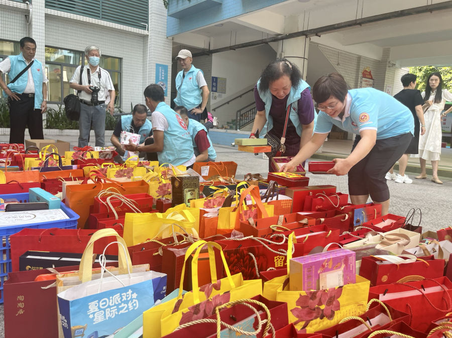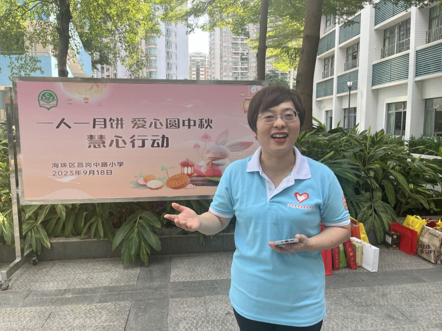 中秋是中国传统的节日之一,象征着团圆和美好。9月18日上午9时许,昌岗中路小学翠城花园校区的学生们便纷纷将自己送出的爱心月饼摆放在学校的校园内,该校家长委员会的热心家长们也和赵广军志愿服务队的志愿者们一起对月饼进行分拣和清点。活动现场,赵广军志愿服务总队常务副队长、广钢志愿服务队队长林丹亮和志愿者们则抓紧时间对学生们捐赠的月饼进行清点。林丹亮说,开展这样的活动很有意义,得知学校的孩子们热情送出爱心月饼,她十分感动,每个月饼都是孩子的一份心意。“月饼收集回来后,志愿者们还有大量工作需要去做,包括对月饼进行分类,赶在中秋节之前将月饼送给养老院的老人、独居长者、环卫工人等特殊群体的手中,让他们感受到中秋节的节日氛围。”她说。