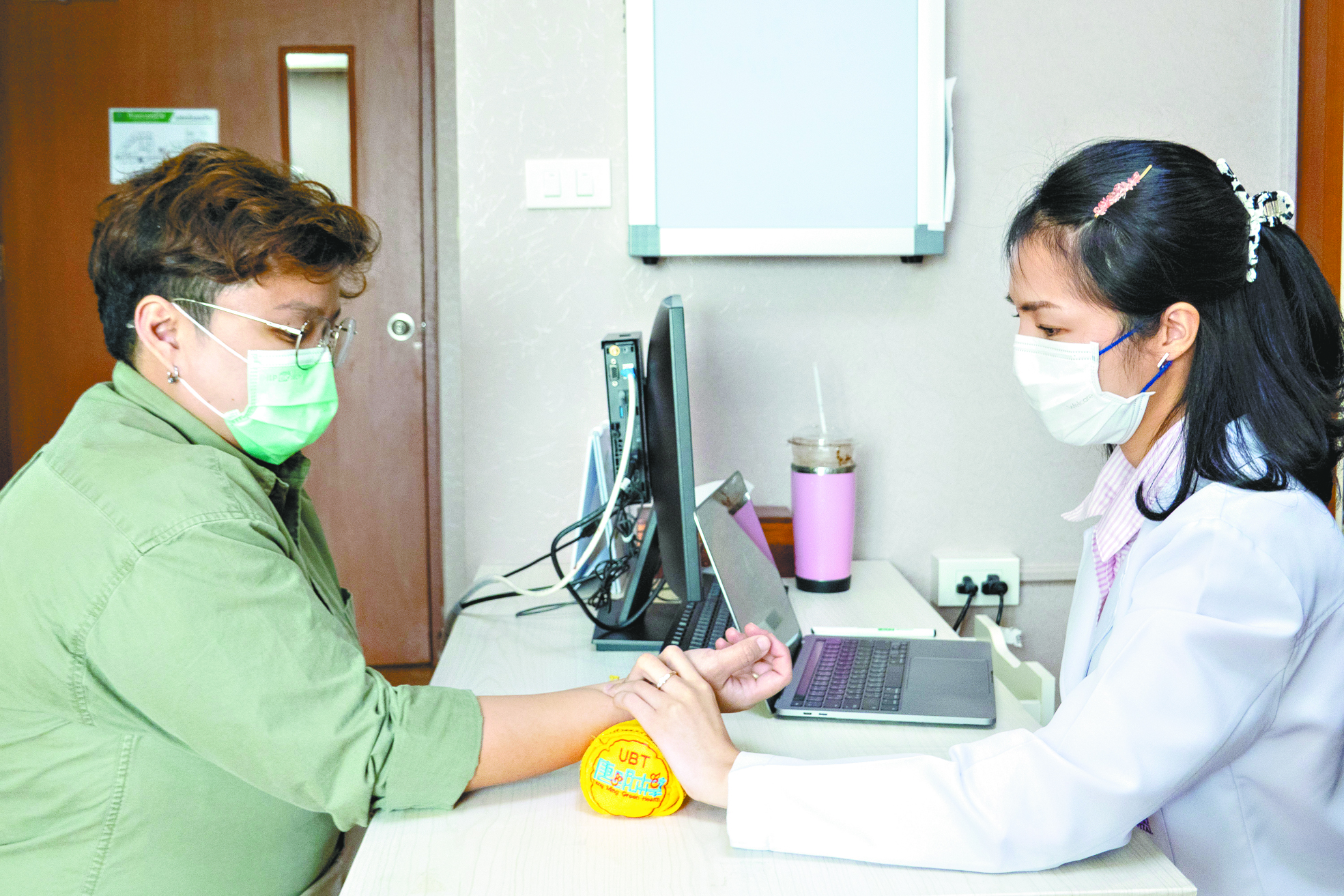 △在泰国曼谷岐黄泰国中医药中心,一名医生在为患者诊脉。 新华社发