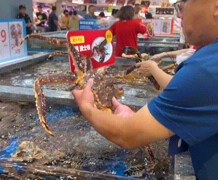 30斤重的深海大龙趸、年龄超过60岁的波士顿大龙虾、昆明基地每日清晨直达的8.8元/枝大绣球花……各种从世界各地送达的海鲜、酒类、花卉让首日到店的客户们挑花眼,还有从南沙本地农场直送的万顷沙莲藕、番石榴、青蟹等,南沙的盒马鲜生自成特色。