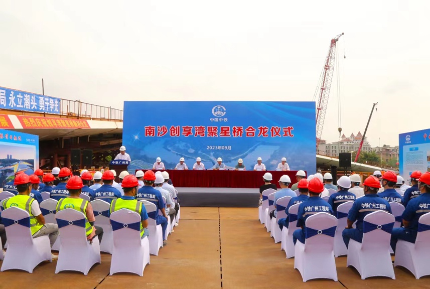 9月22日上午,随着最后一块25吨重的钢箱梁架设完成,南沙区新地标创享湾人行桥项目聚星桥胜利合龙。
