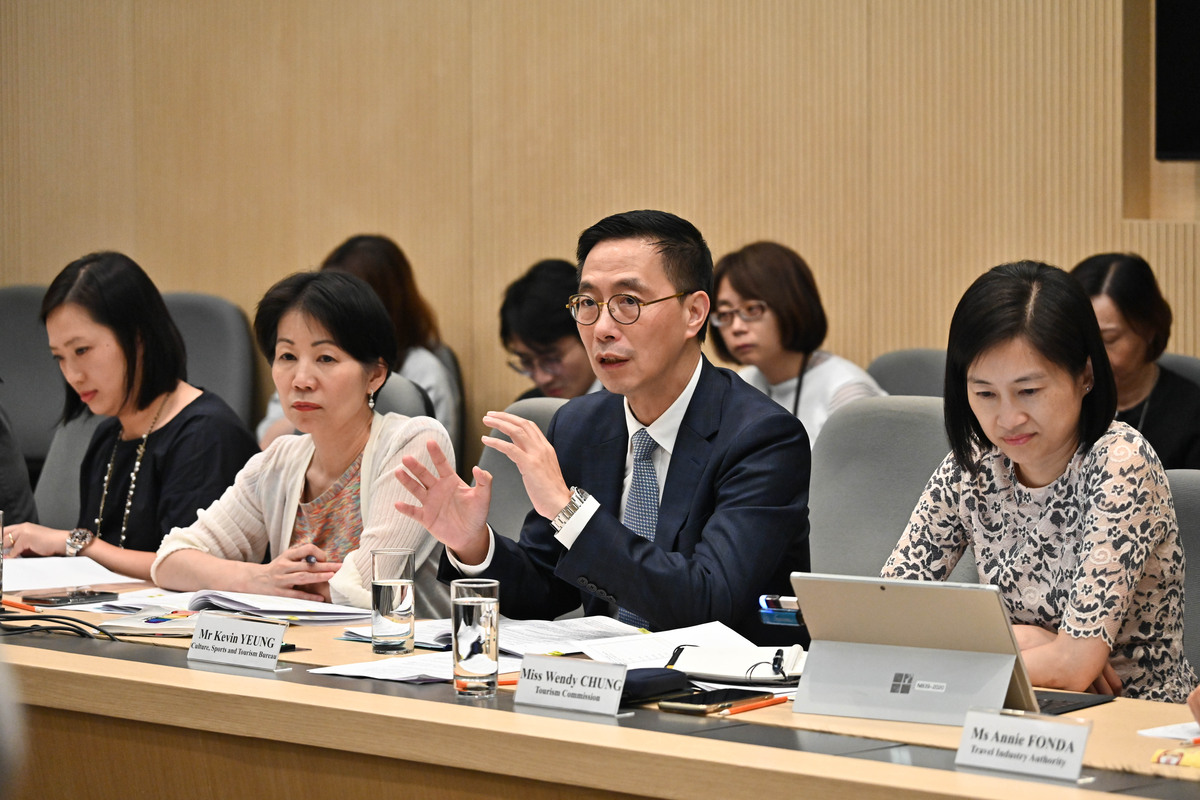 楊潤雄(前排右二)主持會議,統籌國慶黃金周接待訪港旅客的預備工作,並聽取各與會單位代表講解相關準備工作。