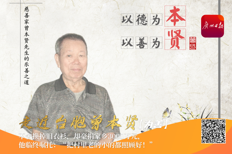 当天,番禺石碁镇桥山村6名大学毕业20多年的后辈相约来探望从我国台湾回穗的詹惠美,她是曾本贤的遗孀。20世纪90年代,曾本贤从台湾返番禺家乡办厂。30余年间,曾本贤及家人捐赠超过3000万元,用于助学、扶困、敬老、建设家乡等,其中受到曾本贤伉俪奖励、资助考上大学的桥山村学生就有300多名,改变了众多桥山青年的人生轨迹。捐款毫不吝啬的曾本贤生活却极为简朴,出行就是一辆破旧单车,甚至不舍换掉一件穿了20年的旧衣衫。这样可亲可敬的乡贤,让村民们始终铭记在心,感念在心。