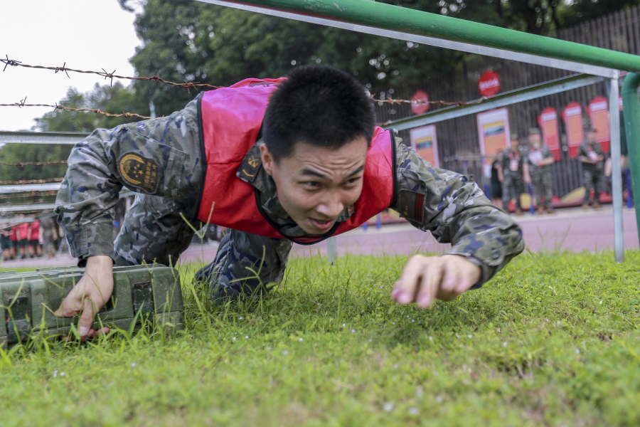 训练只有实打实,战场才敢硬碰硬。低姿网内尘土飞溅,一道道身影急速穿梭而出。动作干净利落,迅猛干脆。从低姿网出来的下士小李气喘吁吁地说,“作为新选晋的警士,对我而言这是个非常好的平台,有那么多强手同台竞技,不仅让我有突破,也看到自己努力的方向。”