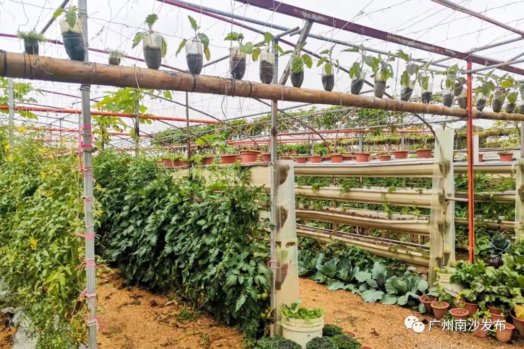 梁锦华介绍说,生态园的占地面积约40亩,于2018年基本实现无土栽培。园区内还种植了万顷沙本土的火龙果、番石榴、酸梅豆、桑果、百香果等上百种水果,以及花菜、番茄、甘蓝等近百种蔬菜。