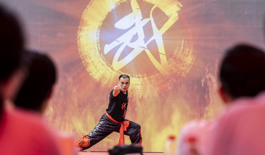 “大烧猪红皮赤壮,寓意身强力壮!”市级非物质文化遗产广式烧味制作技艺传承人朱岳争手起刀落,利索斩出一盘猪腩靓肉。围满档口的市民群众争相试吃,“香、脆、鲜、嫩”的化皮烧肉入口,细细品味表皮的香脆,脂肪的柔软、瘦肉的甘香,层次丰富的口感让人停不了口,大家不时发出“啧啧啧”的赞叹。