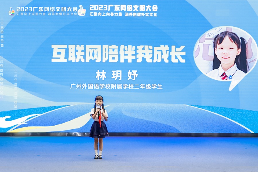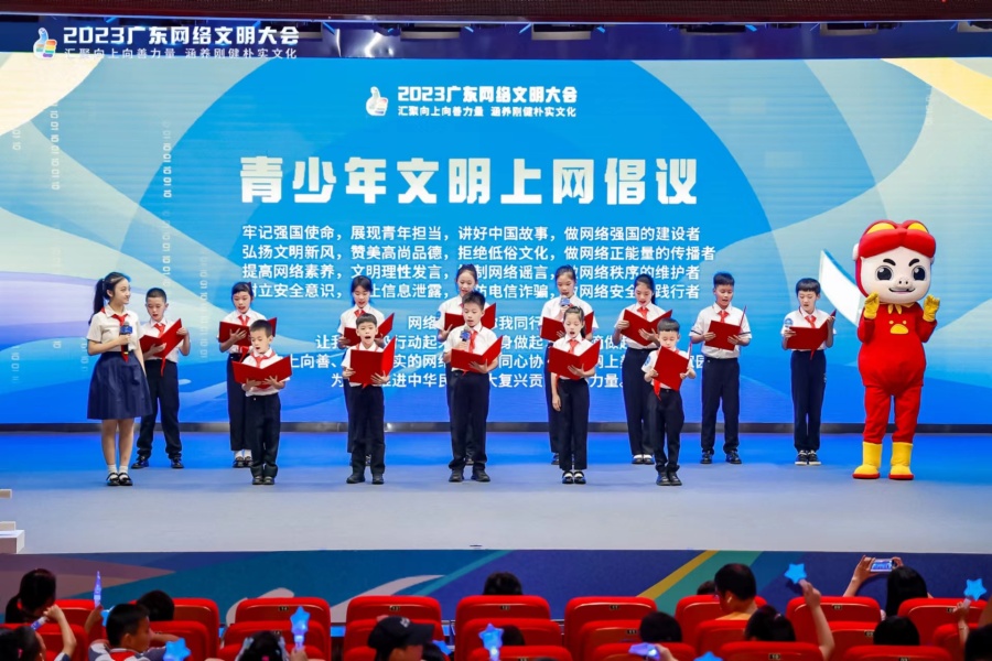 9月23日,由广东省委网信办、广东省文明办等主办的“E路向上·童向未来”2023粤港澳大湾区儿童互联网大会在广州市南沙区举行。学生代表们共同宣读了青少年文明上网倡议,承诺“做网络强国的建设者,做网络正能量的传播者,做网络秩序的维护者,做网络安全的践行者”。