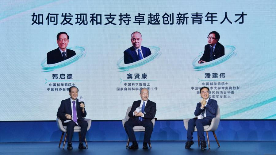 随后,韩启德与中国科学院院士、国家自然科学基金委员会主任窦贤康,中国科学院院士、中国科学技术大学常务副校长潘建伟就“如何发现和支持卓越创新青年人才”这一问题进行了精彩对话。