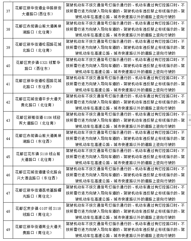 记者从广州花都警方获悉,为进一步加强道路交通安全管理,规范道路交通通行秩序,保障人民群众的生命财产安全,交警部门新增了69套交通技术监控设备。根据公安部《道路交通安全违法行为处理程序规定》(公安部第157号令)第十六条规定,交警部门现向社会公布。该批新增的设备将于2023年9月25日开始投入使用,交警部门将依法对有交通违法行为的车辆进行拍摄取证并予以执法,请广大驾驶人守法出行、安全驾驶。