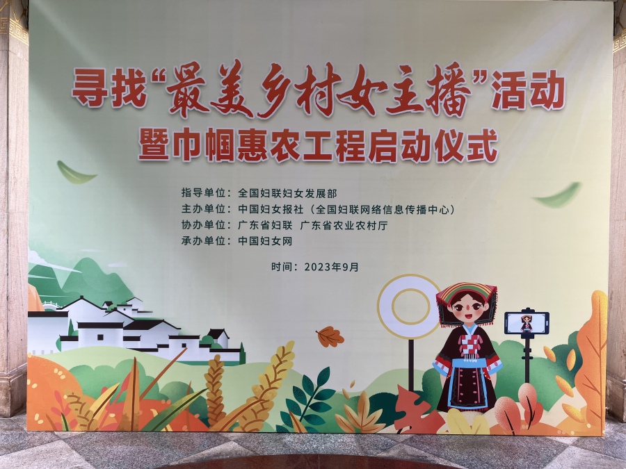 9月23日,在第6个中国农民丰收节到来之际,中国妇女报社(全国妇联网络信息传播中心)在全国妇联发展部的指导下,在广东省妇联、广东省农业农村厅协助下,在广州举行寻找“最美乡村女主播”活动暨巾帼惠农工程启动仪式,共同礼敬中华农耕文明,共商凝聚巾帼力量、助力乡村振兴。