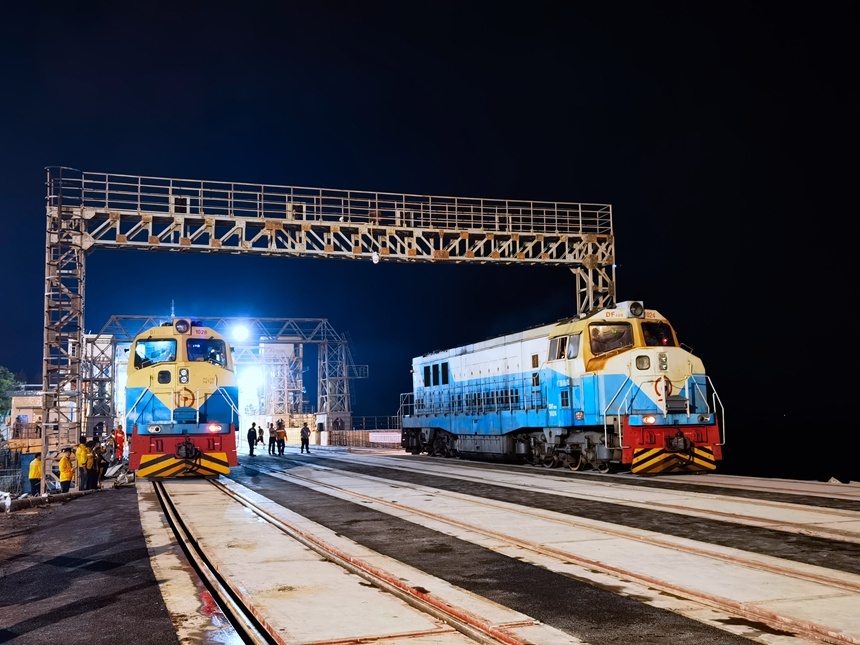 “圆满完成!”9月24日00:00,随着现场阵阵欢呼声和两台编号为东风4D1024、1028的铁路机车头缓缓驶上栈桥,标志着粤海轮渡南北港铁路栈桥封锁施工圆满结束,粤海轮渡及过海旅客列车、货物列车恢复正常运营。