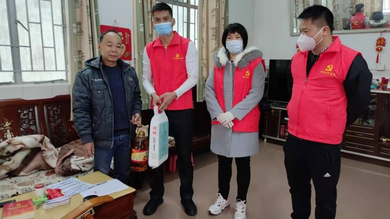 吴淑珍(右二)上门慰问村内老人。(资料图片)