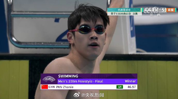 在男子100米自由泳决赛中,中国队选手潘展乐夺得冠军。