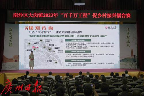 记者获悉,南沙区大岗镇在全镇举办“百千万工程”促乡村振兴擂台赛。擂台赛包括初赛和决赛,25个行政村悉数参与初赛;成功晋级的10个行政村日前在大岗镇政府大会堂开展决赛。各村党组织书记围绕“展乡村风采,绘发展蓝图”主题,瞄准打造乡村振兴“广东范例”的目标,盘家底、亮成绩、明思路、谋发展,以直观的美图和数据,介绍抓党建促乡村振兴中鲜活的好经验、好做法、好思路,将现场领导评委、嘉宾、观众带到“农村现场”领略大岗魅力。经激烈角逐,最终庙贝村荣获一等奖,新沙村、高沙村荣获二等奖,北流村、岭东村、南顺二村荣获三等奖,客家村、大岗村、南顺一村、上村村荣获优胜奖。