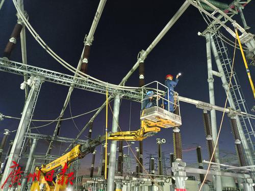 广州供电局变电检修试验人员通宵开展设备消缺,确保迎峰度夏期间电网安全稳定和电力可靠供应。