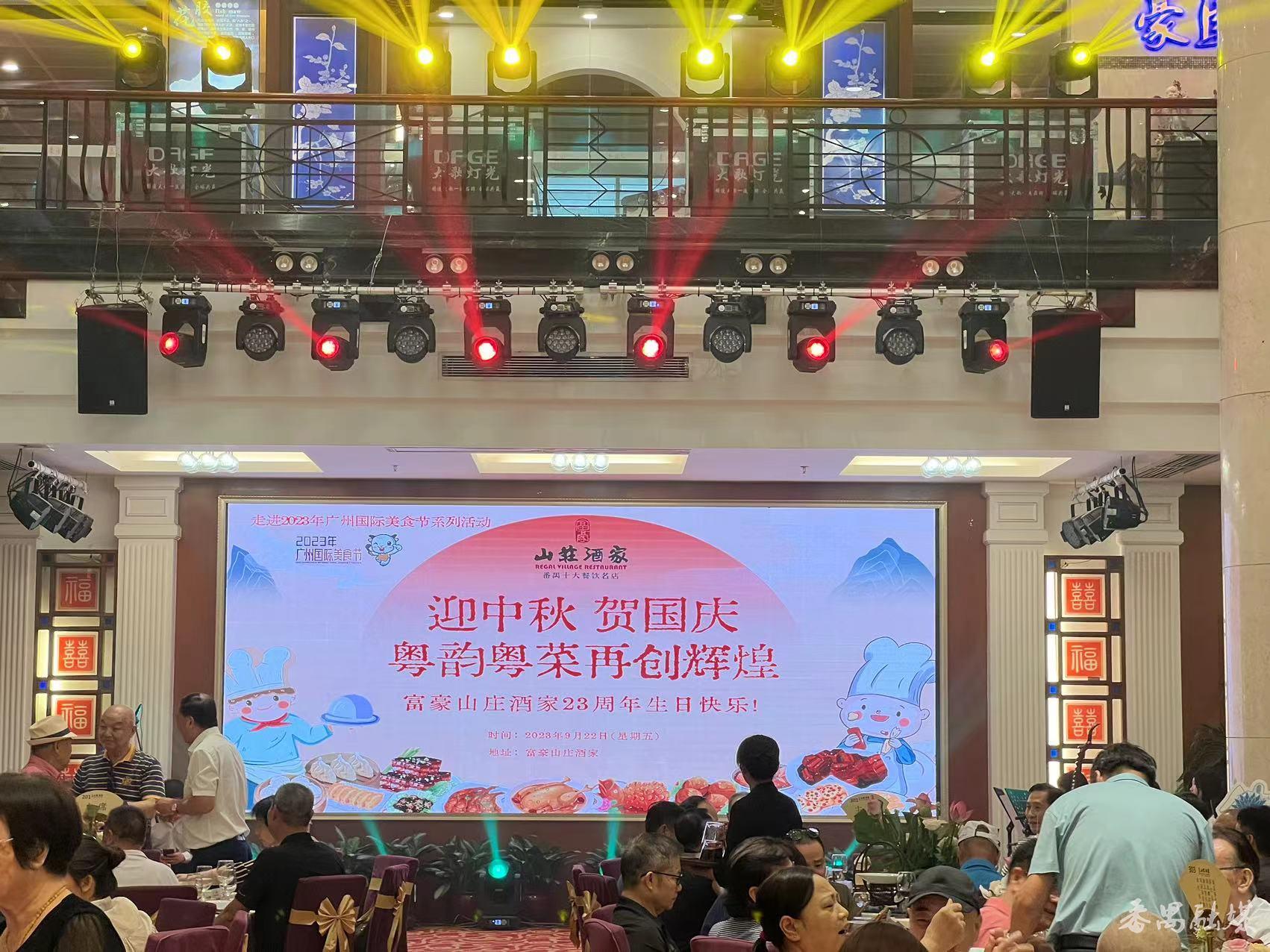 9月22日晚,番禺富豪山庄酒家举行“迎中秋贺国庆粤韵粤菜再创辉煌”23周年庆活动,活动邀请了300多位嘉宾参加,共同品尝粤式美食和体验粤韵文化。