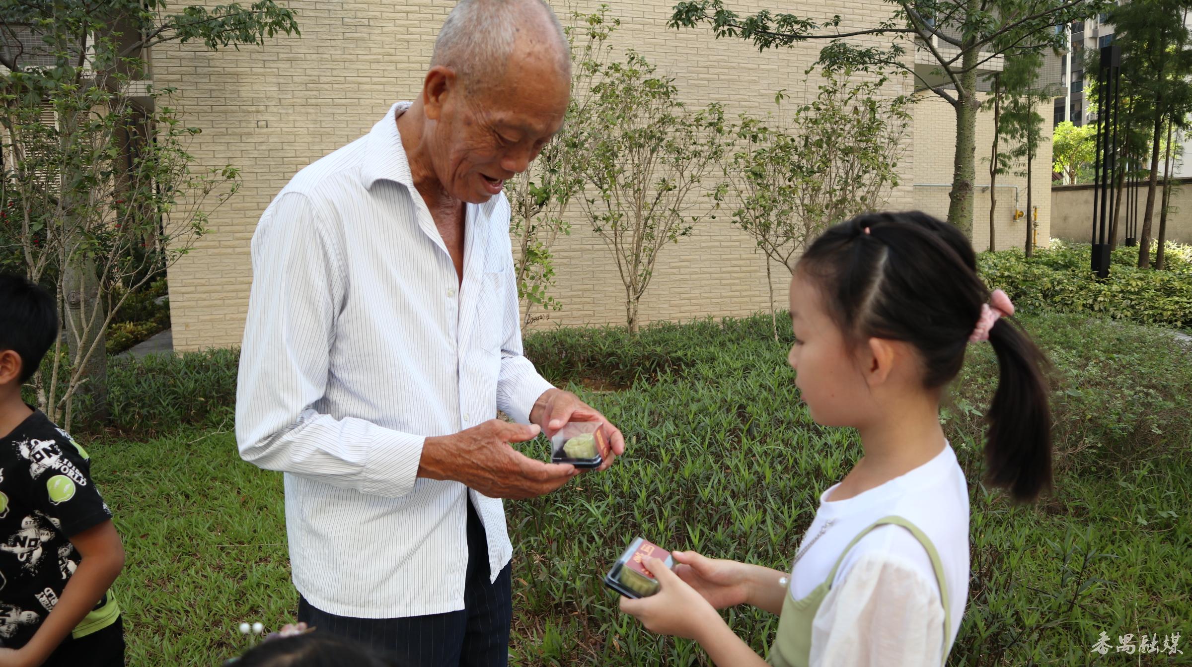 随后,亲子家庭和志愿者还将制作好的月饼打好包装并贴上了“幸福满满”“开开心心”等祝福语,大家将这些承载美好祝愿的月饼送到社区老人手中。当老人家收到小朋友送来的月饼,个个都笑得合不拢嘴。