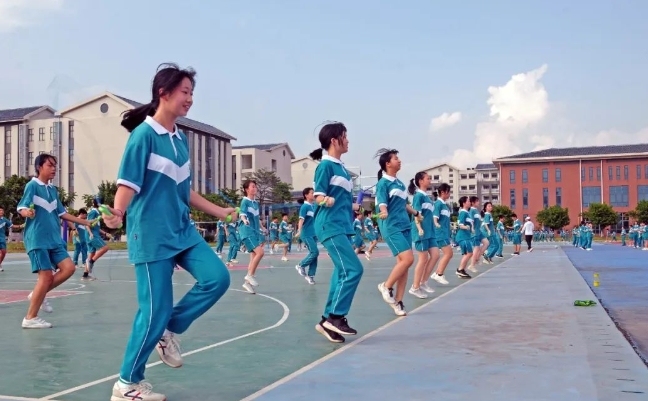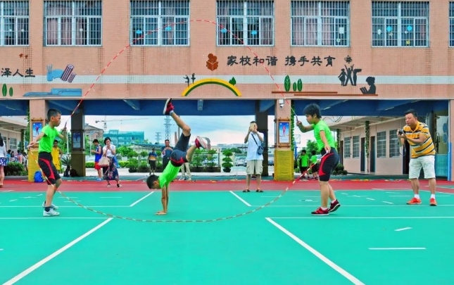 此外,通过组织全区体育教师跳绳培训、学生跳绳比赛、体育教师跳绳比赛、教职工(非体育教师)跳绳比赛、体育教师跳绳达标测试、跳绳课题研究和教材开发的“六步走”发展战略以及大课间体育活动、浸润社团、班级联赛、全员运动会等系列化有效措施,花都一手抓普及、一手抓提高,建立“班—校—镇—区”四级竞赛体系,营造充满阳光活力的校园体育文化,打造以跳绳项目为代表的“一校一品”“一校多品”活力校园,为学生搭建广阔成长平台。在保障每天1小时校内体育锻炼时间的前提下,积极探索通过鼓励学生上午到校后先进行20分钟左右的身体活动、组织学生每节课间走出教室进行适量体育活动、倡导学生积极参加体育类课后托管、每天开设一节体育课等方式逐步增加校内体育锻炼时间至1.5小时;此外,通过推进“家庭体育锻炼计划”,有效指导学生开展校外1小时体育锻炼。