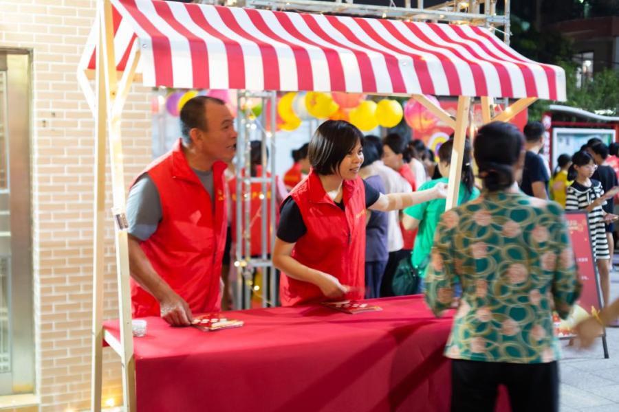 同样的党群集市在南沙遍地开花。“又有吃又有玩,这次活动十分有趣!”湴湄村村委会一楼广场,人头攒动、热闹非凡,欢呼声阵阵传来。这是9月23日晚,在榄核镇湴湄村举办的“湴湄秋月夜 共庆国庆节”双节主题党日灯光集市活动现场。