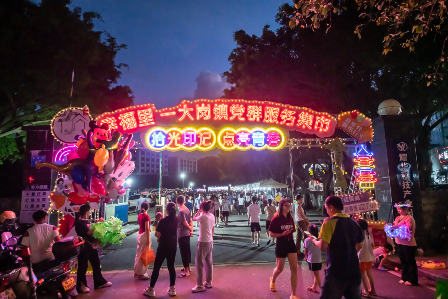 大岗镇十八道美食、东隆村葵香鸡、南村坊村大头菜、南顺一村香水柠檬……“网红”店铺和产品一起摆摊,让南沙区大岗镇“拾光印记,点亮青春”幸福里——大岗镇党群服务集市成了大岗居民必逛的网红集市,持续释放创新活力,满足居民日益增长的精神文化需求。
