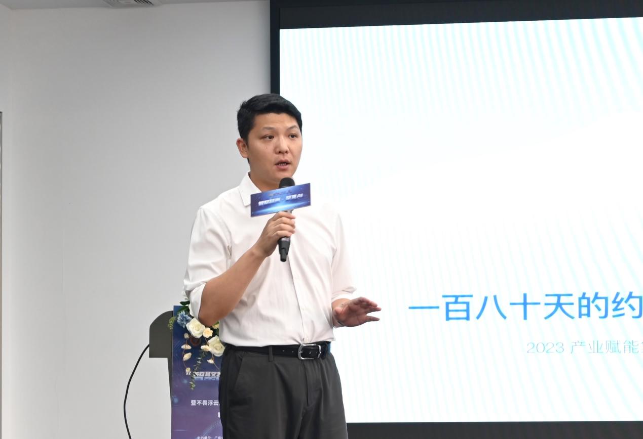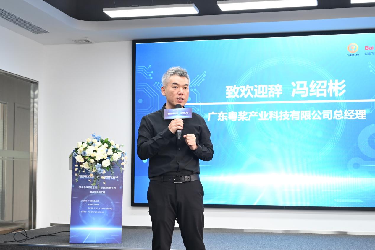 广东粤桨产业科技有限公司总经理冯绍彬致欢迎辞,表示广州人工智能产业赋能中心致力于通过AI赋能产业应用,激发企业增长新动力,希望通过今天的活动搭建一个开放的交流平台,加强各行各业间的沟通了解、信息互通,探求资源共享的合作契机,共同为制造业赋能、为社会输送价值。