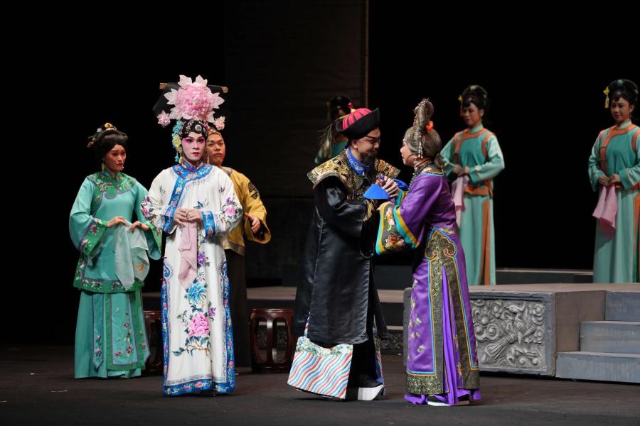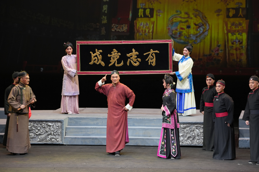 此外,该剧还出现不少“戏中戏”场景。剧末别出心裁演绎了《六国大封相》,名家新秀一起登场,原汁原味展示了传统的粤剧排场和经典“戏棚官话”古腔,成为全场瞩目的又一焦点。