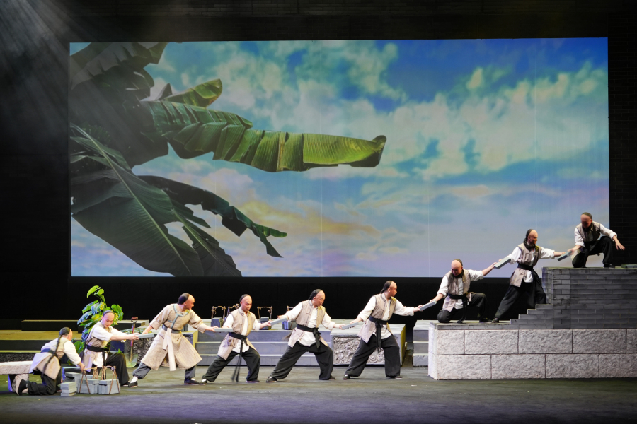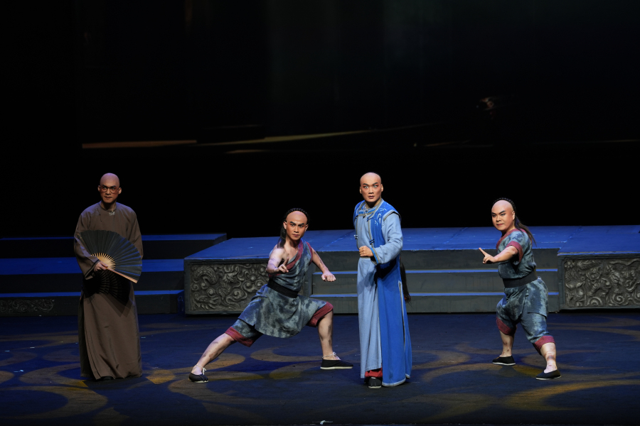 其中,“踩棍凌空转体”“垫脚双飞燕”“铲台蹬椅”等一系列以南派风格为基调的高难度武打技巧和动作的展示,刚劲有力、松弛有度,令观众大开眼界。