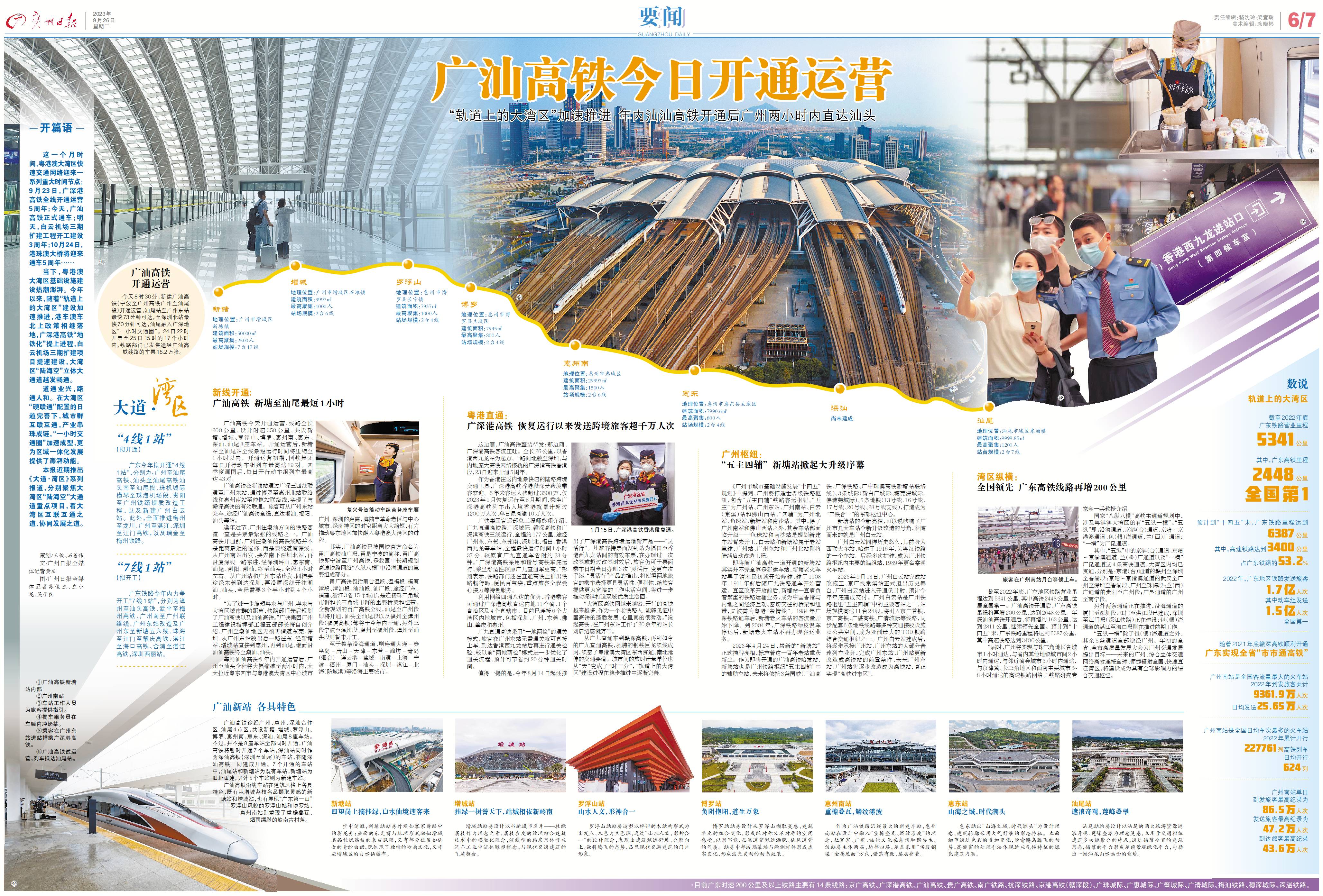 这一个月时间,粤港澳大湾区快速交通网络迎来一系列重大时间节点:9月23日,广深港高铁全线开通运营5周年;今天,广汕高铁正式通车;明天,白云机场三期扩建工程开工建设3周年;10月24日,港珠澳大桥将迎来通车5周年……