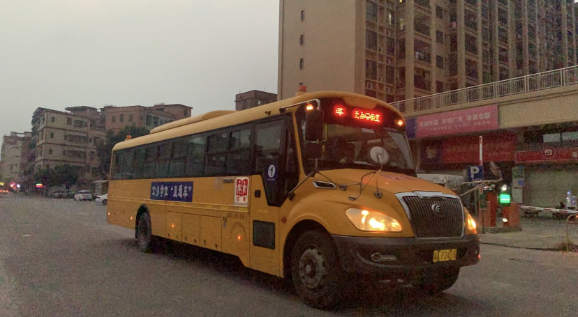 入秋后,白昼渐短。早晨6时许,广州市花都区狮岭镇,天尚未全亮,一辆“大鼻子”校车闪烁着灯光,缓缓驶向第一个停靠站点时代康桥小区。