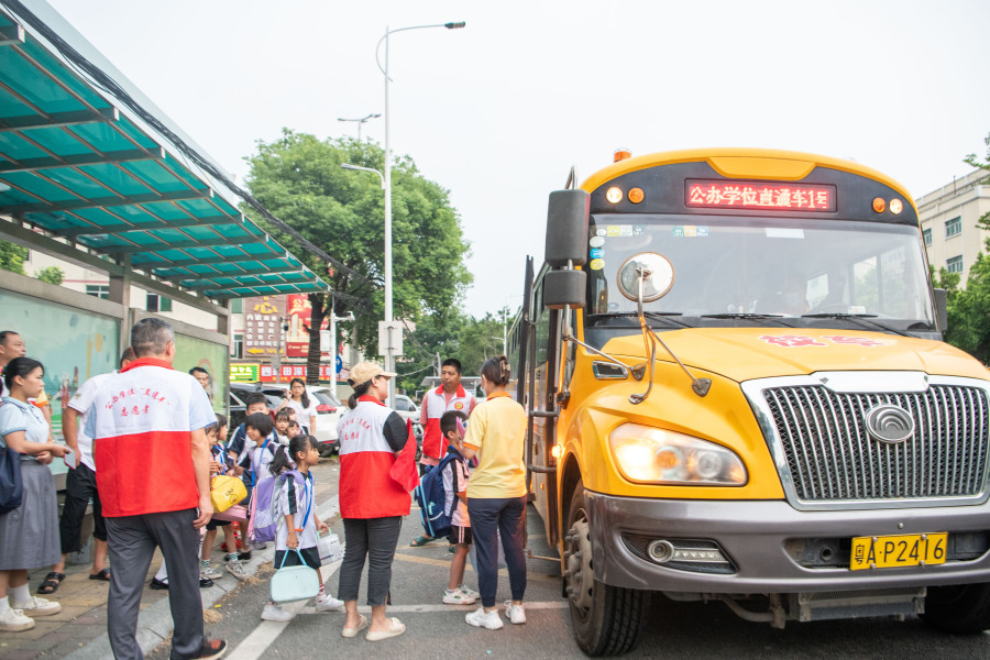 学位有了,但跨镇上学,交通成了新的难题。此时,公办学位“直通车”应运而生。韩庆雄表示,此举主要解决孩子上放学交通与安全难题。今年9月1日,公办学位“直通车”试运营,设计了两条路线,每辆“直通车”配备了一至两名随车照管员,停靠点还安排了志愿者组织学生有序乘车。