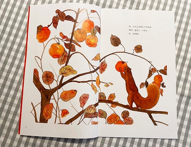 一场秋天的盛宴,描述自然的循环与馈赠。将科学知识融入故事,以动物们吃柿子为主线,鸟儿、虫子、蚯蚓接连登场,增进孩子认知。画面细腻,动植物描摹生动,各种乡野风光随景入画,尽显大自然的优美与诗意。兼具写实与写意的工笔描摹,色彩明丽,赏心悦目。
