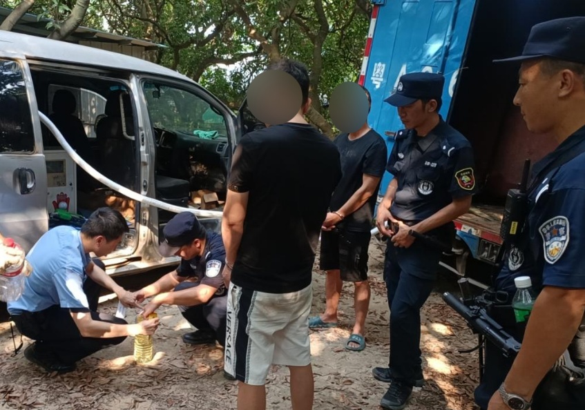 9月6日、9月11日,花都巡特警分别在花都区花山镇、花东镇发现并捣毁2个私油窝点,刑拘2名嫌疑人。随后,花都巡特警队员再发力,在巡逻时发现花都区花东镇有一可疑车辆,疑为私油贩卖点。对此,巡特警大队制定抓捕方案,确保抓捕成功。