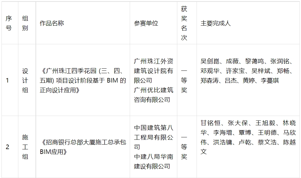 26日,2023年“羊城工匠杯”广州市劳动和技能竞赛——“智慧建造工匠创新”BIM技能竞赛颁奖典礼在广交会展馆举办。入围决赛的13个作品角逐出一、二、三等奖,3个项目获得本次大赛一等奖,分别是:广州珠江四季花园、招商银行总部大厦、海珠湾隧道工程。