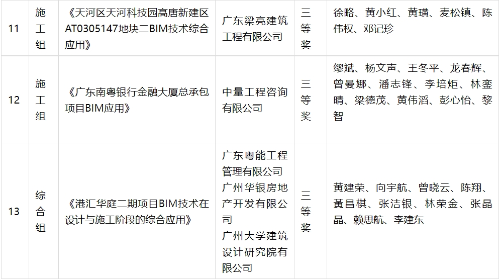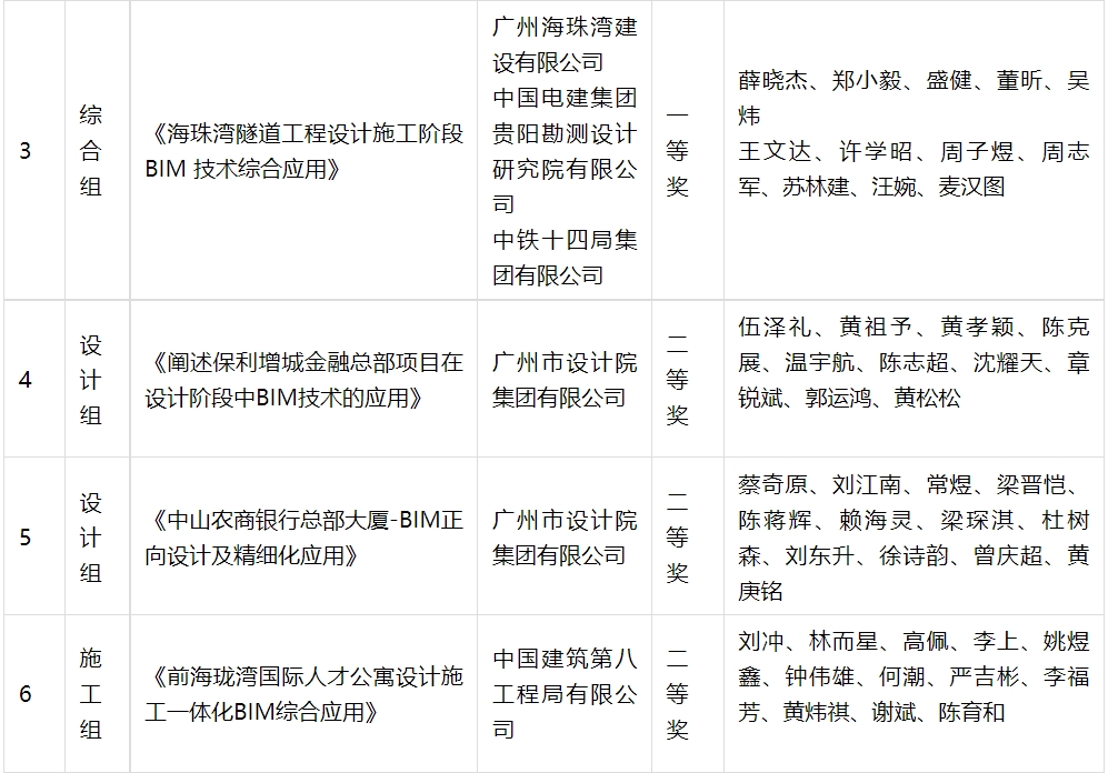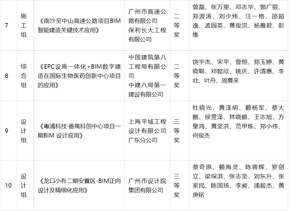 本次大赛共计收到来自多家企业、院校的40个参赛项目,大部分项目来自粤港澳大湾区的重点工程项目,类型涵盖超高层、商业综合体、医院、道桥隧等多领域。入围决赛的13个作品,经过专家评审,共角逐出一等奖3名,二等奖5名,三等奖5名。