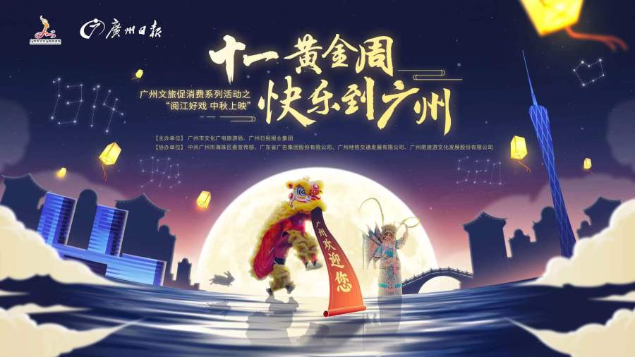 9月28日晚18:00 - 22:00,由广州市文化广电旅游局与广州日报共同主办的“十一黄金周 快乐到广州”文旅促消费系列活动启动仪式暨“阅江好戏,中秋上映”广府非遗中秋游园会活动在广报中心举行。同时,启动仪式将正式拉开广州“双节”假期精彩文旅活动的序幕,现场还将发放2023年新一轮广州文旅消费券,总金额超过1000万元,还有丰富的游园会礼品等你来参与。