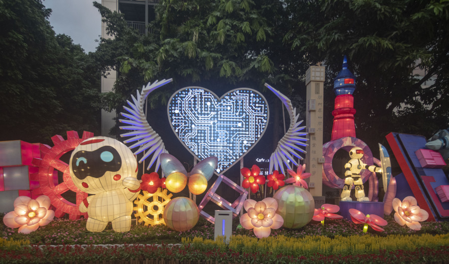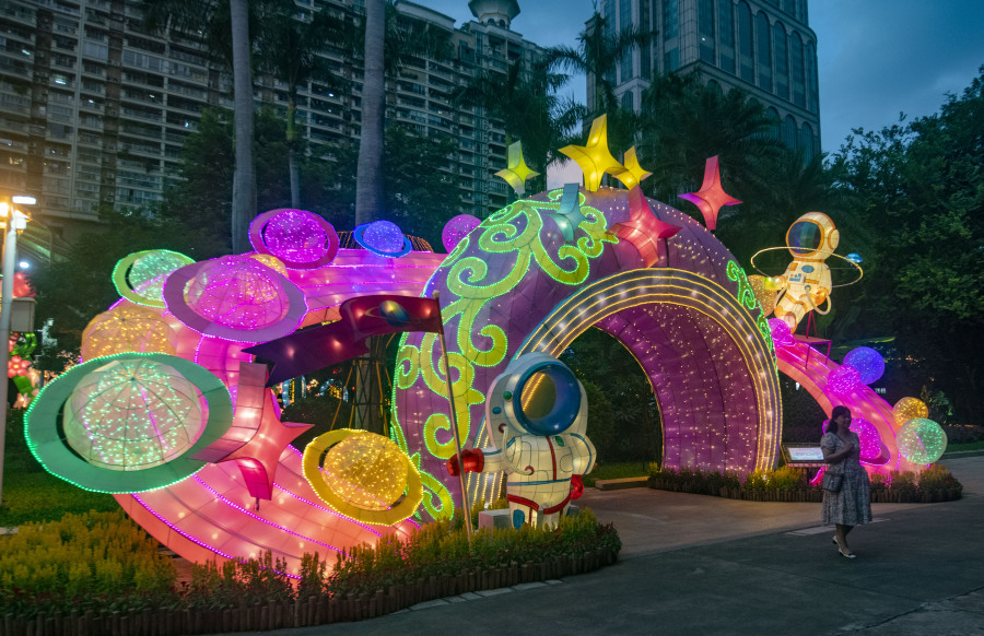 据悉,今年灯会在灯光动技术的运用实现了新突破,实现了形、色、声、光、动的统一。最抢人眼球的莫过于《科技强国新征程》灯组中间展翼高飞的造型了。该灯组带有一套体感互动装置,通过雷达摄像头捕捉人体动作,控制灯组中翅膀随着游客双臂摆动而呈现出不同的灯光变化,从而实现人体动作与灯光的同步。
